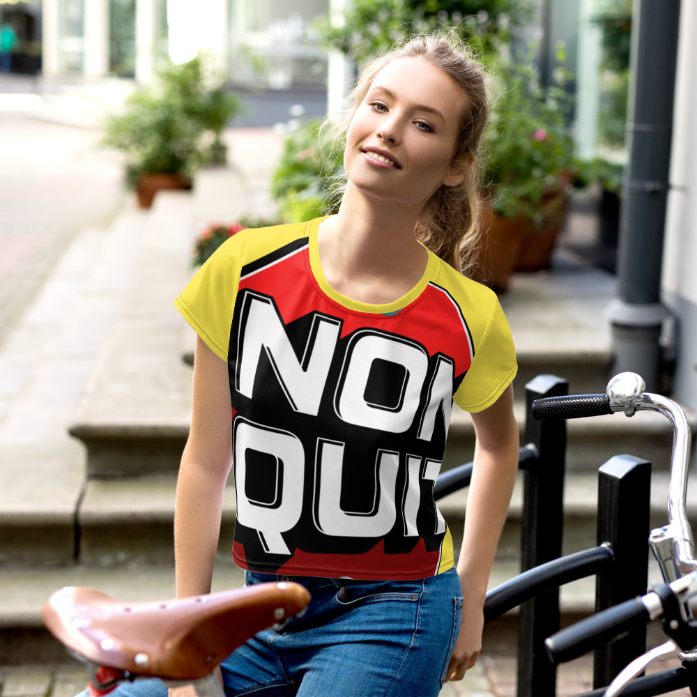 Be the first to review “NON QUIT Yellow All-Over Print Crop Tee”